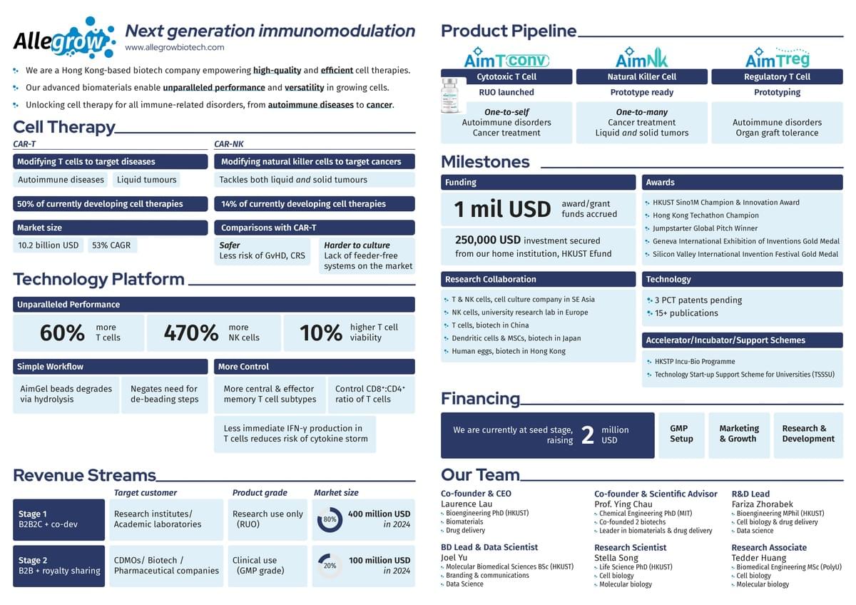 Allegrow最近完成了种子轮融资,现正筹备 A 轮融资。如需洽谈投资事宜或寻求合作授权,请通过 welovecells@allegrowbiotech.com 与我们联系。